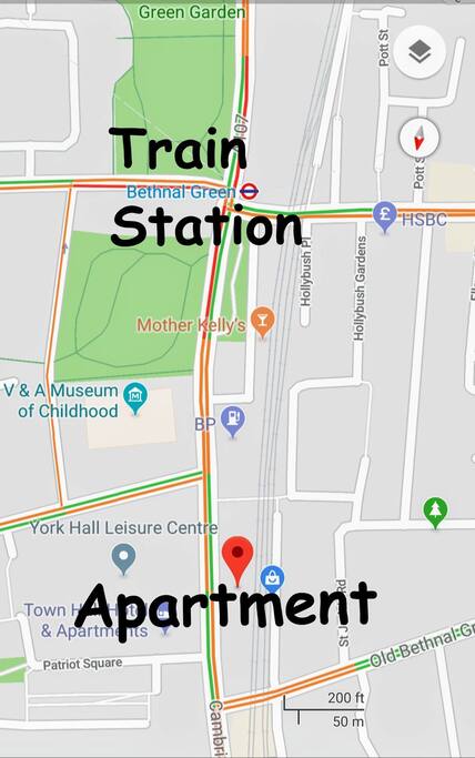 The room is in the perfect location for public transport. The central line (Bethnal Green Station) is located within a two minute walk. Bus stop is right outside the door with 4 routes running. The overground is a five minute walk away. Or you could hire a bike which is the fastest way round London. British Museum: 20 min Tate: 25 min Tower Bridge: 20 min (13min Bike) Tower of London 20 min West end Theatres: 18 min Oxford Circus: 19 min The O2: 25 min Shoreditch: 20 min (walk) Hyde Park: 24 min Buckingham Palace: 30 min
